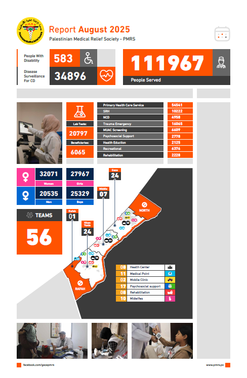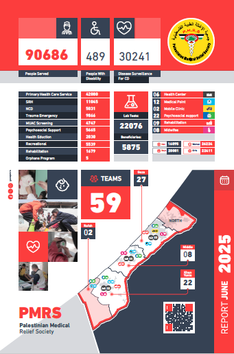 PMRS on kaikessta huolimatta kyennyt jatkamaan avun toimittamista Gazaan. PMRS on UNRWA:n jälkeen toiseksi suurin Gazaan hätäapua antava organisaatio. PMRS:n perustajajäsenen Mustafa Barghoutin kesäkuussa 2024 antaman ilmoituksen mukaan Gazassa toimi 45 PMRS:n tiimiä, jotka toimittivat apua 200 000 ihmiselle.