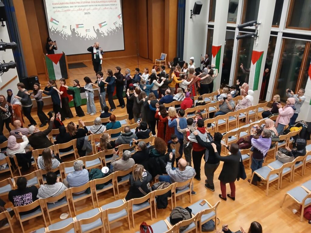 Suomen Palestiinalaisten Yhdistys ja AKYS järjestivät lauantaina 29.11.2025 lämminhenkisen Palestiina-solidaarisuustilaisuuden Helsingissä Arbiksella, jonka juhlasali täyttyi Palestiinan ystävistä. Marraskuun 29. päivä on YK:n nimeämä Kansainvälinen päivä solidaarisuuden osoittamiseksi Palestiinan kansalle. Tätä teemapäivää vietetään solidaarisena muistutuksena Palestiina-kysymyksen nykytilasta.